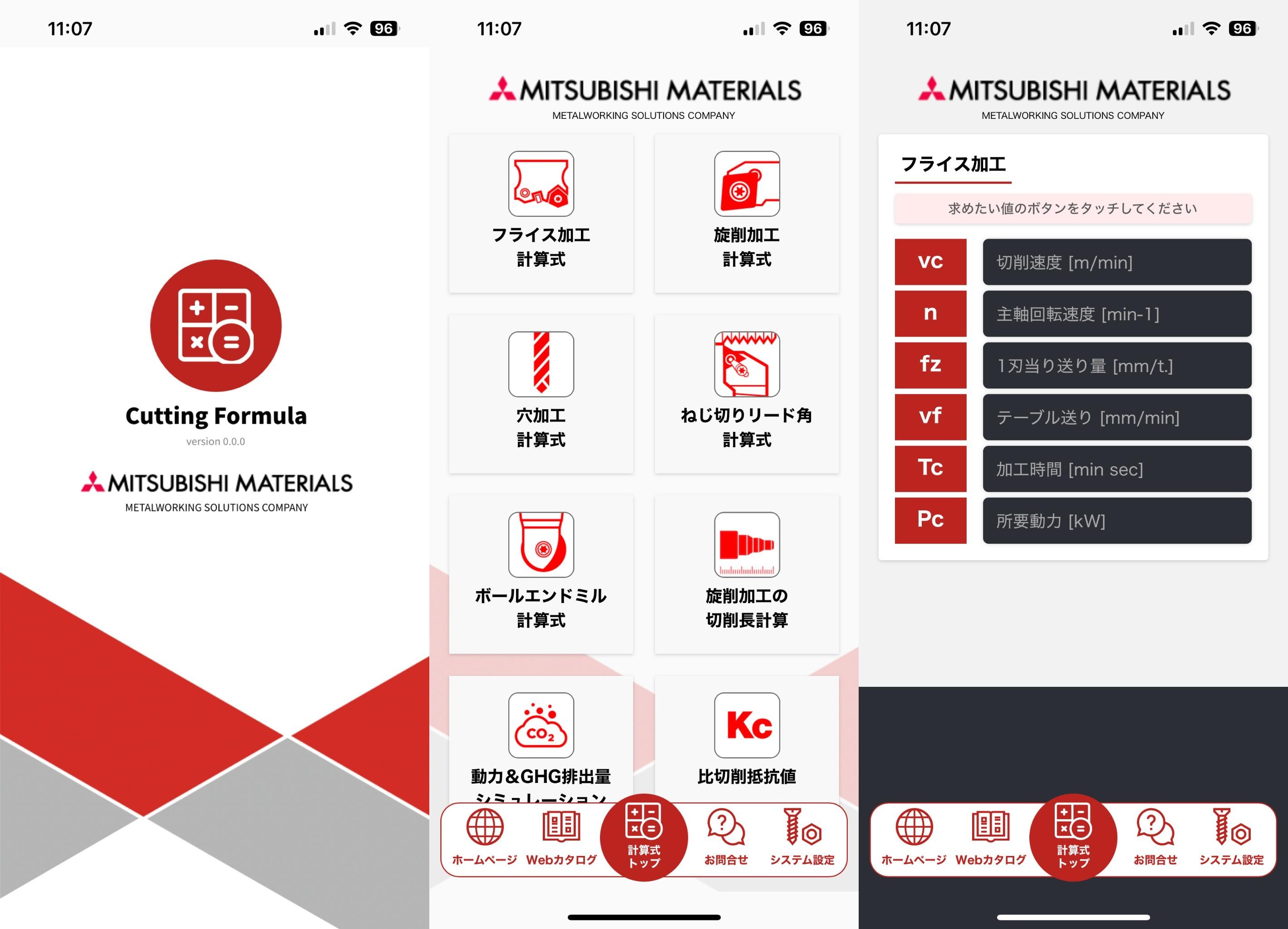 ※各種計算式の他に、三菱マテリアルの切削工具に関する情報をご覧いただけるなど、お客様に幅広くご利用いただけるアプリケーションとなっております。