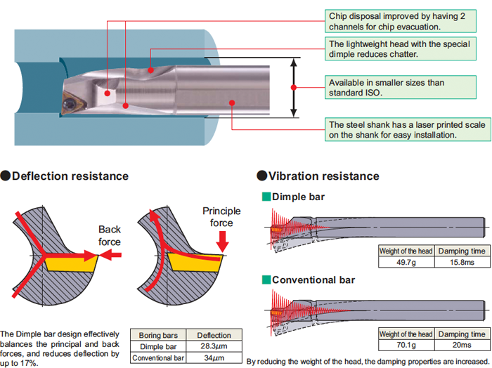 The carbide shank type Dimple Bar uses through coolant holes.