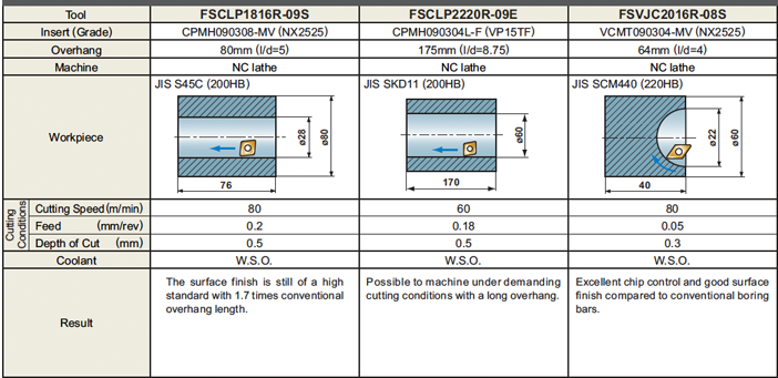 Three different lengths of boring bars. (Short shank series)