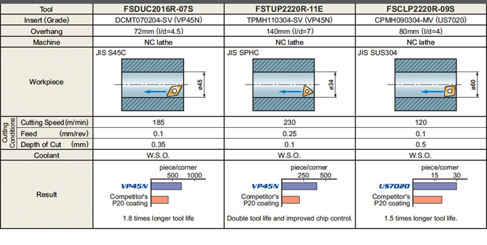 Stable chip control and sharp cutting for a wide application area.