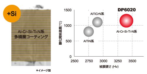 さらに、多積層構造とすることで、切削加工時の耐摩耗性と耐クラック性を向上させました。