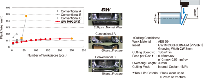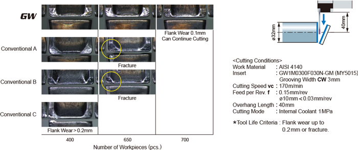 No abnormal cutting edge damage, 4 time longer tool life was achieved.