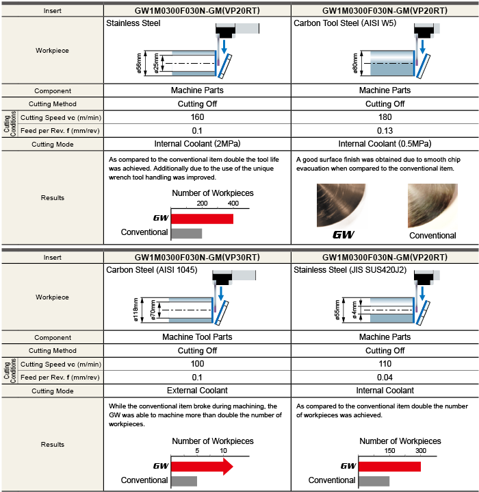 The examples shown are actual applications and can differ from the recommended cutting conditions.