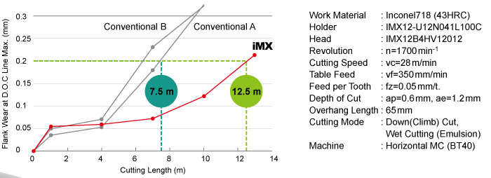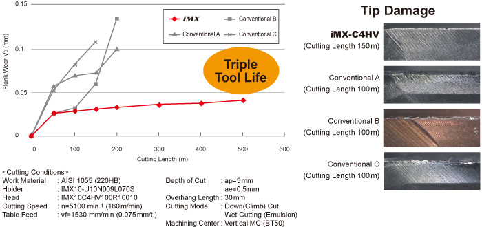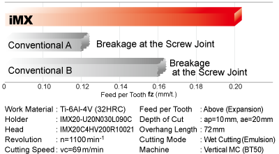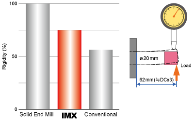 The iMX series is a revolutionary end mill system that enables efficiency, high accuracy and rigidity by combining the advantages of both solid carbide and indexable end mills.