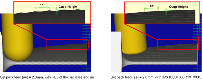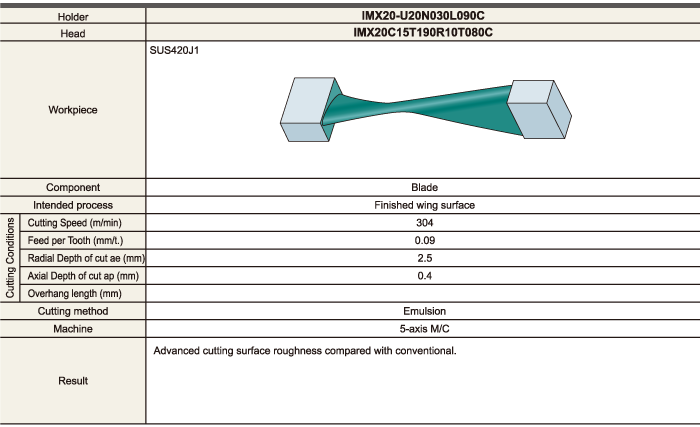 Taper radius end mills, (corner radius) were conventionally used for turbine blade finishing. iMX taper radius end mills offer equivalent performance to solid end mills but achieve lower process costs.