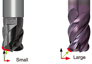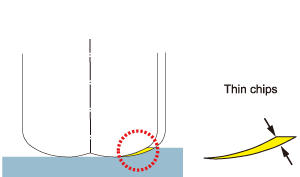 reduces cutting resistance and is effective for low rigidity and long tool overhang applications.