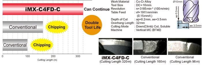 Tool Life Comparison when machining Cobalt Chromium Alloy (DC=10mm)