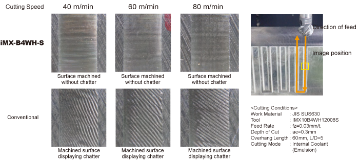 When machining steel (S50C) grooves, no chatter vibration occurred and a finished surface roughness of Rz = 6μm was obtained.