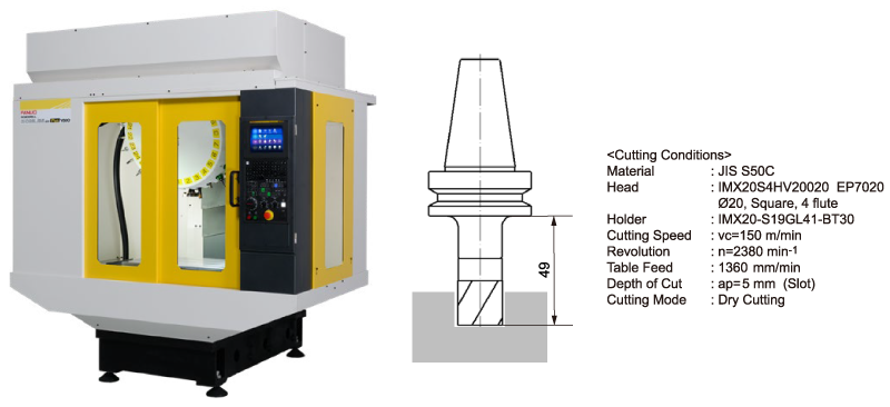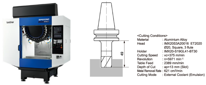 Achieved high efficiency machining with a metal removal rate of 600 mm3/min.