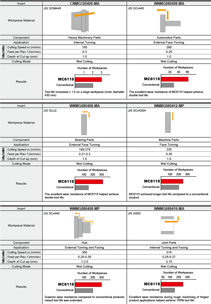 MC6115 improves high speed machining and process efficiency with a dramatic increase in resistance to wear and heat.