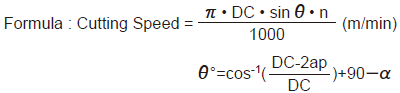 (Cutting speed at the cutting depth border for oblique machining)