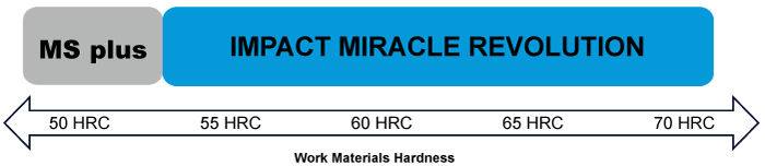 IMPACT MIRACLE REVOLUTION end mills demonstrate excellent wear resistance even when machining high hardness workpiece materials.