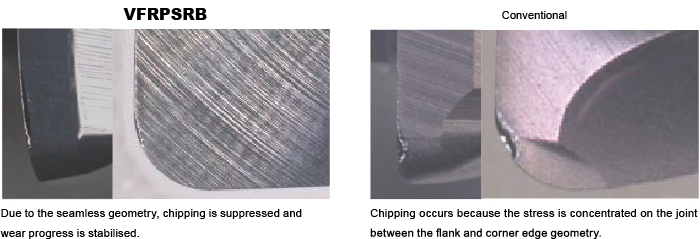Compared to conventional products, more than 2 times longer tool life during stable machining was achieved.