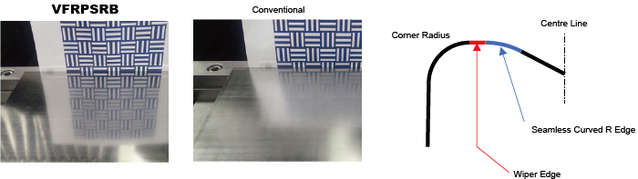 The corner radius of VFRPSRB is measured as follows, based on the absolute centre of the corner radius.